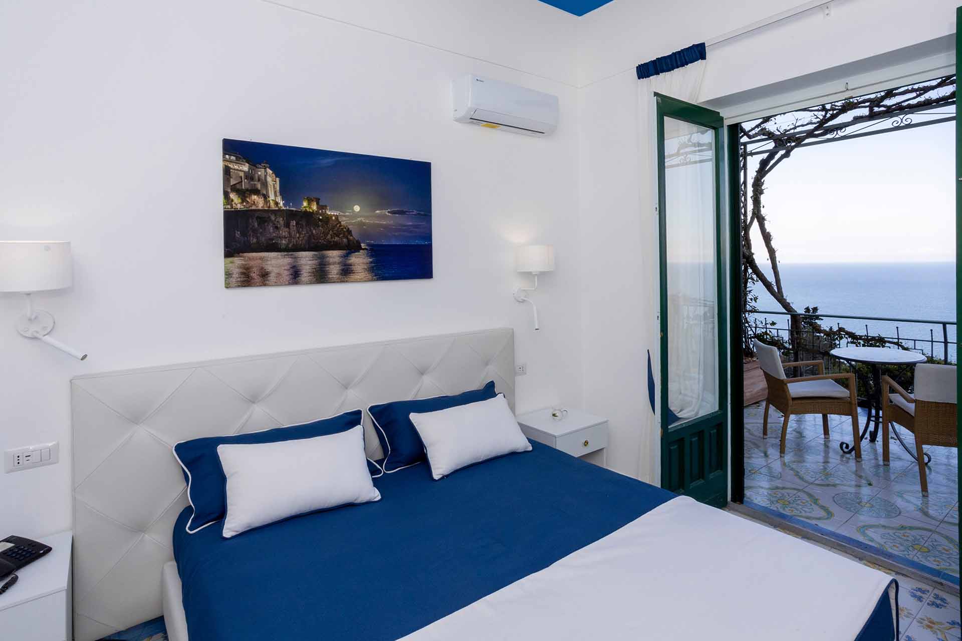Le camere Standard con Vista Mare sono disponibili sia con letto matrimoniale che con letti gemelli e sono dotate di finestra con vista sulla splendida Costa di Amalfi.